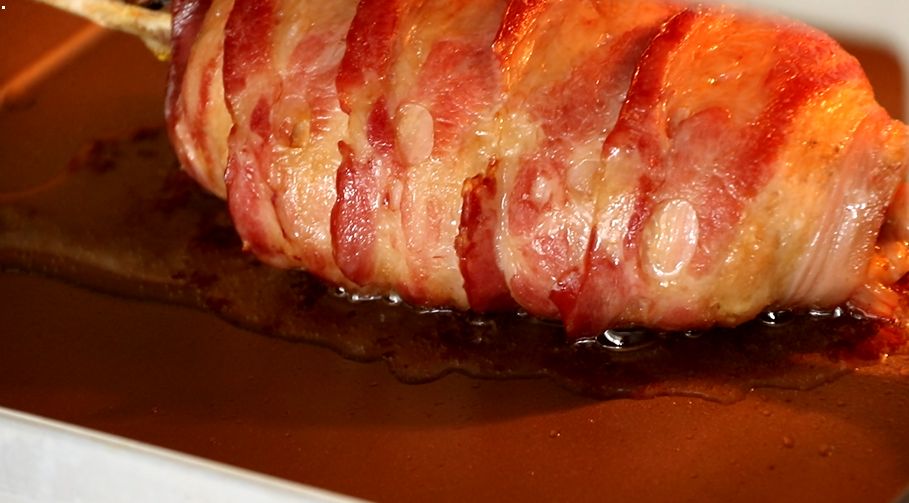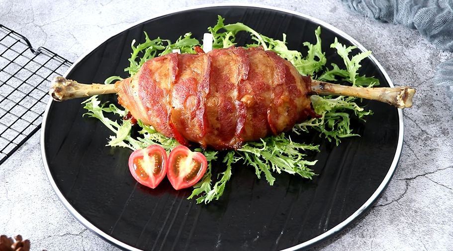 最后摆上培根,将下面铺好的培根也重叠包裹住鸡肉。