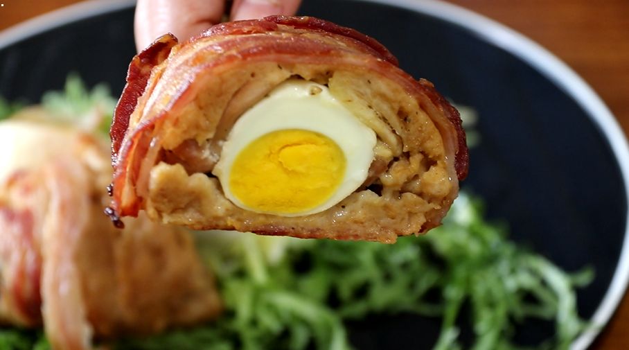 培根,鸡腿,鸡脯肉,鸡蛋,高筋面粉,淀粉,盐,料酒,生抽,黑胡椒碎。