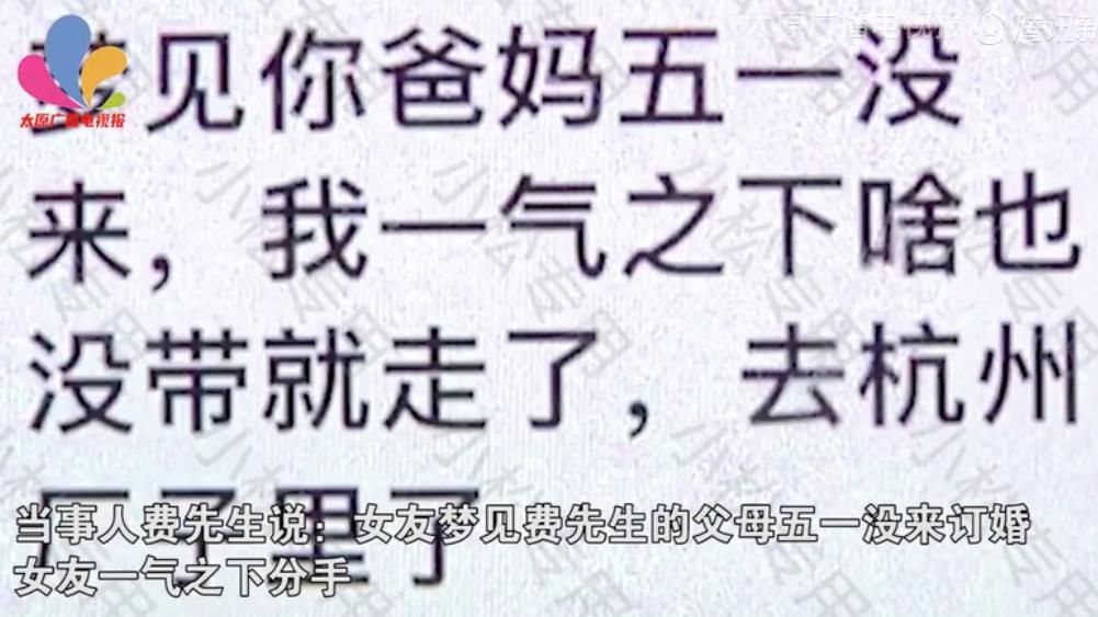 近日河南郑州当事人费先生说:女友梦见费先生的父母五一没来订婚,女友一气之下分手。费先生安慰女友说不可能的,没想到东北那边因为疫情,费先生的父母无法出门前来订婚,梦境成真了。