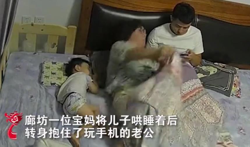 妻子哄睡儿子后扭身抱住老公,老公反手弹醒儿子求救:手机更好玩