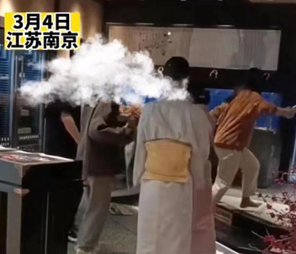 而门口接待的女店员,他们穿着和服,看着2个女生要进来,乐呵呵地接过女生手中的袋子,把他们往店里带。